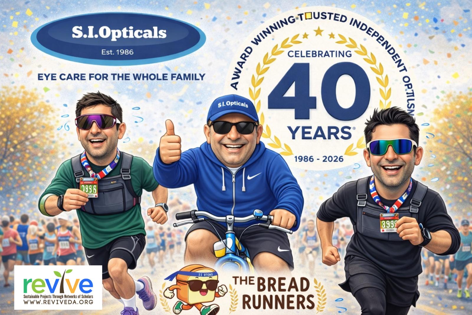 On April 26th, 2026, S.I.OPTICALS (Shabir, Irshad, and Mahomed-Riaz Ibrahim) are taking on an ULTRA-MARATHON the ultimate challenge: Running ( Riaz & Irshad) and Cycling (SHABIR) 50km around Leicester in partnership with REVIVE, a local charity dedicated to providing sustainable aid to those in need. We are aiming to raise £50000 (£1000 for every km) and facilitate the addition of a bread factory and furthermore keep this essential project running, covering flour, fuel, staff wages, and daily distribution across the camps.